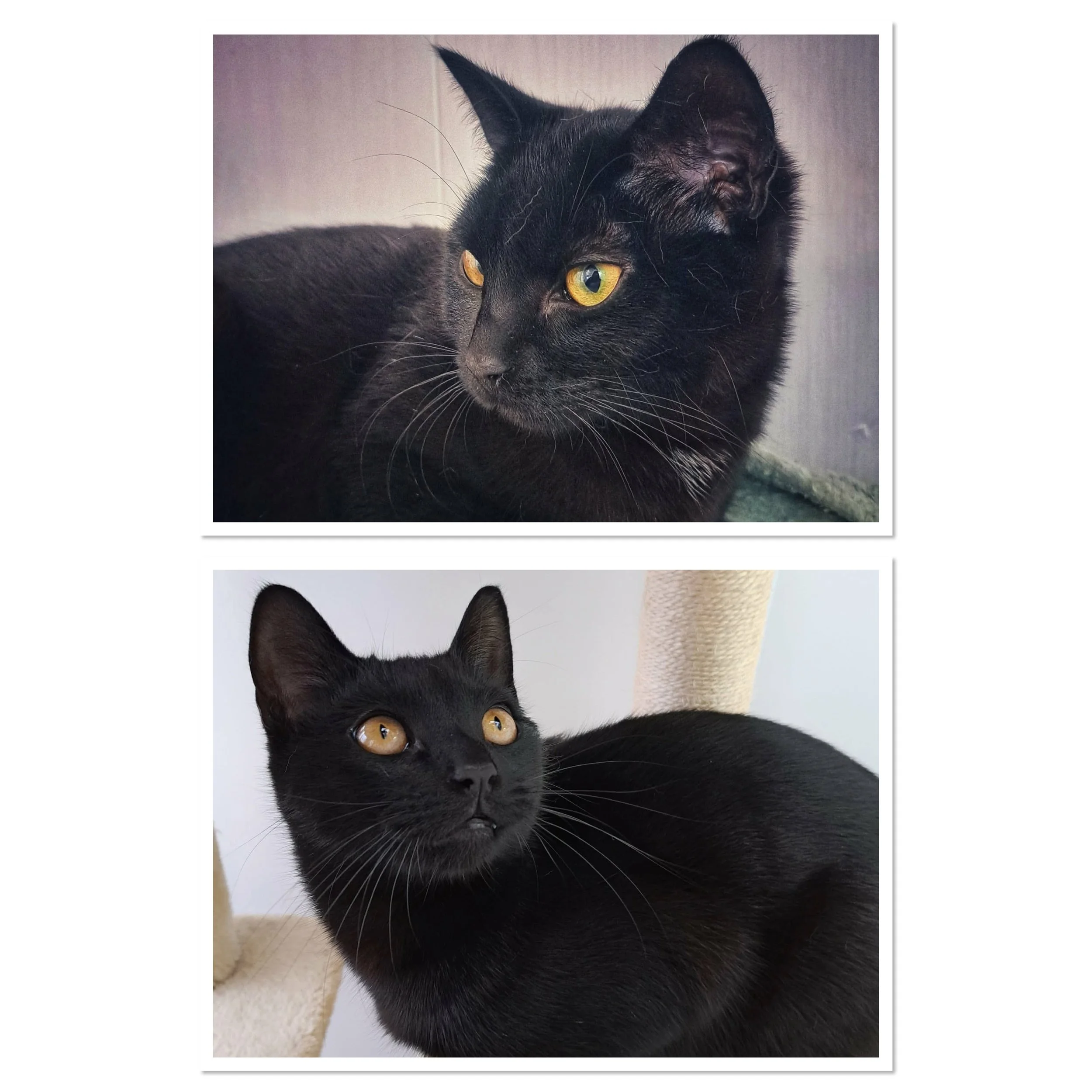 Alastair and Emily are two beautiful 7.5-month-old black kittens searching for a loving forever home together. This sweet brother-and-sister pair are truly special—calm, affectionate, and full of gentle charm.