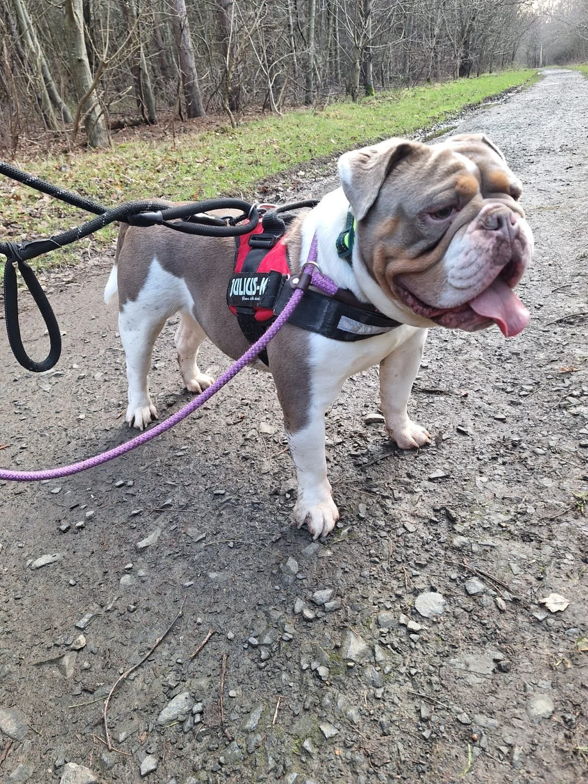 As a bulldog type, Chicco has a shorter muzzle, which means he can be prone to breathing difficulties. It’s important to be mindful of this, particularly in warm weather, during exercise, or if he becomes overexcited. Walks should be kept to cooler times of day, with plenty of opportunities for rest and access to fresh water. Chicco may snort, snuffle, or tire more quickly than longer-nosed breeds, which is normal for bulldogs, but care should always be taken to avoid overexertion and overheating. With sensible management and a watchful eye, bulldogs like Chicco can live happy, comfortable lives.